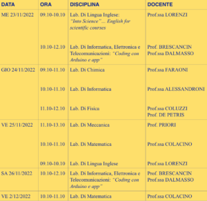 Nei giorni dal 23 novembre al 2 dicembre 2022 e dal 9 al 14 gennaio 2023 gli studenti delle classi terze, delle scuole secondarie di primo grado, hanno avuto la possibilità di assistere alle nostre lezioni, nella specificità di ogni indirizzo.