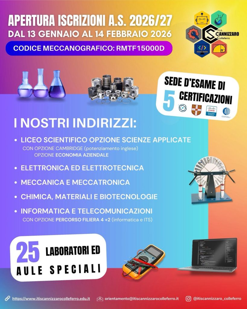 Le domande per l’iscrizione alle classi prime per l’anno scolastico 2026-27 dovranno essere inoltrate esclusivamente online tramite la piattaforma “Unica” del Ministero dell’Istruzione e del Merito.
